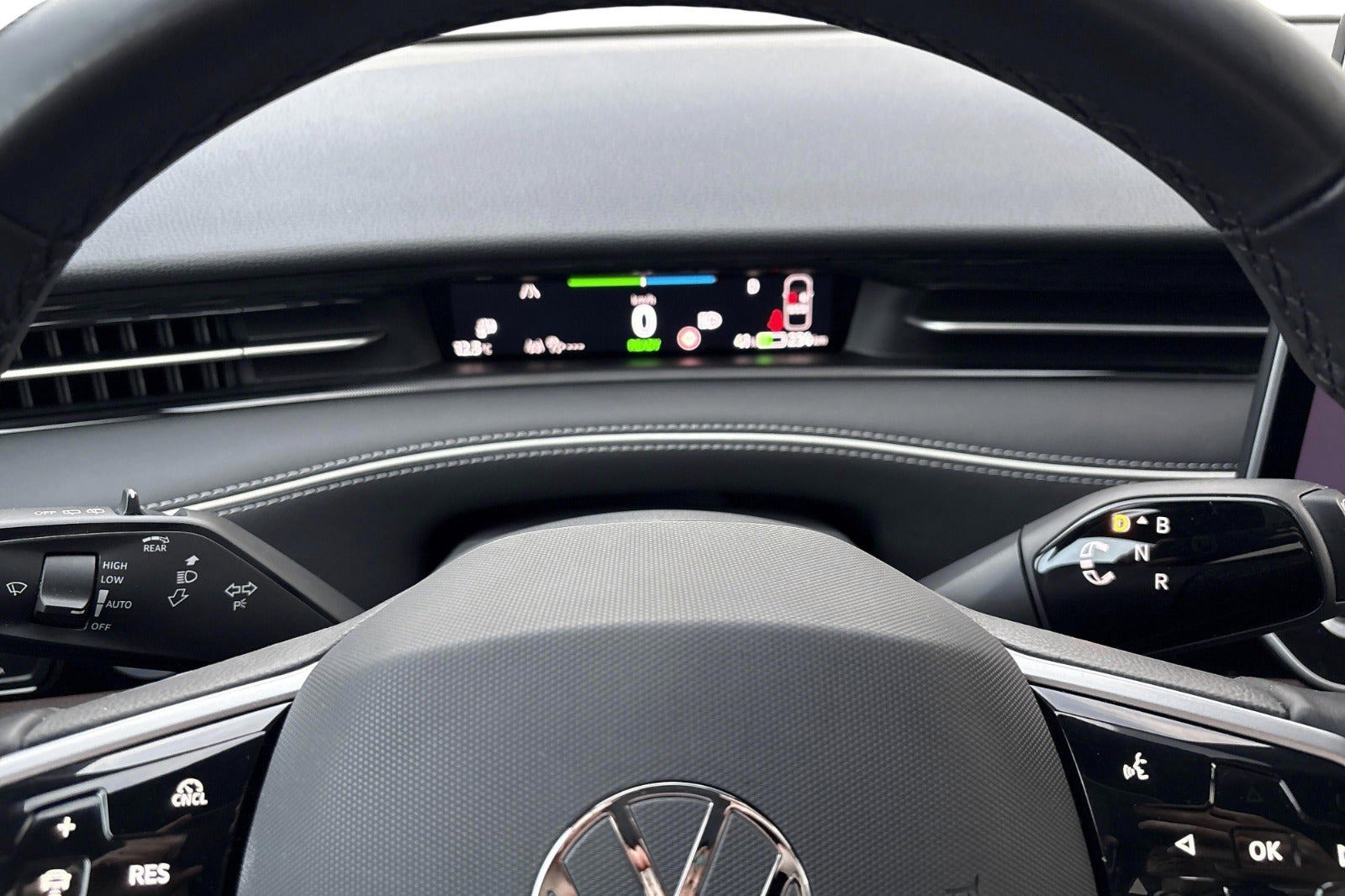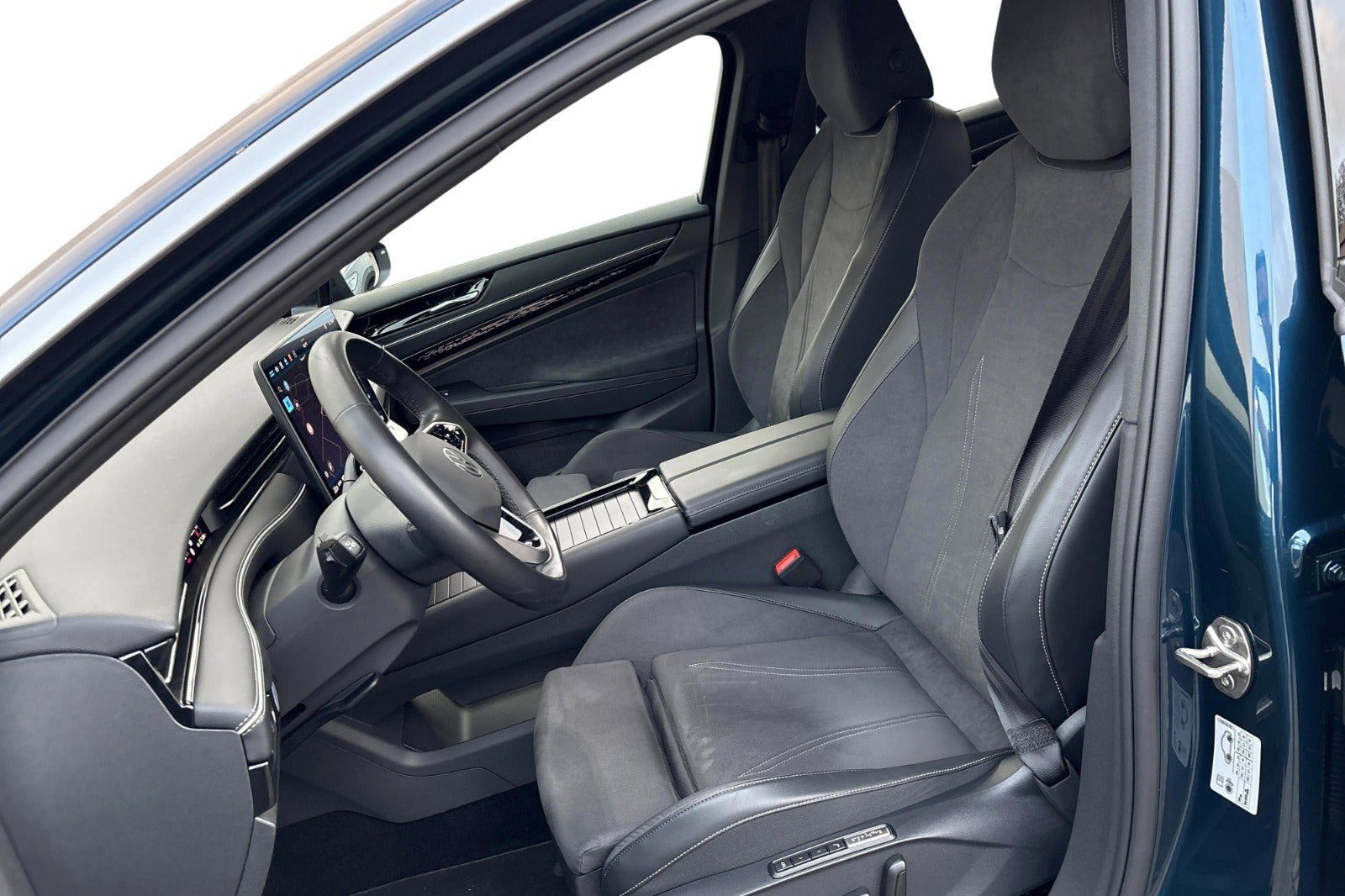 Udstyrshighlights: * Dynamiske LED Matrix forlygter med IQ.Light og Dynamic Light Assist * 20" letmetalfælge Montreal, tonede ruder og sort tagræling * Komfortpakke med memory-funktion, Park Assist Plus og bakkamera * Climatronic klimaanlæg med 3 zoner og Air Care * Premium ergoActive forsæder med eljustering og massage * Head-up-display med Augmented Reality og stor infotainmentskærm * App-Connect med trådløs Apple CarPlay/Android Auto og induktiv mobilopladning * Varmepumpe og ladekabler til både hjemmeladning og hurtig DC-opladning * Avanceret sikkerhed: nøglefri betjening, tyverialarm, ISOFIX, adaptive fartpilot, Lane Assist, PreCrash og nødopkaldssystem * Ambientebelysning i 30 farver og interiørpakke