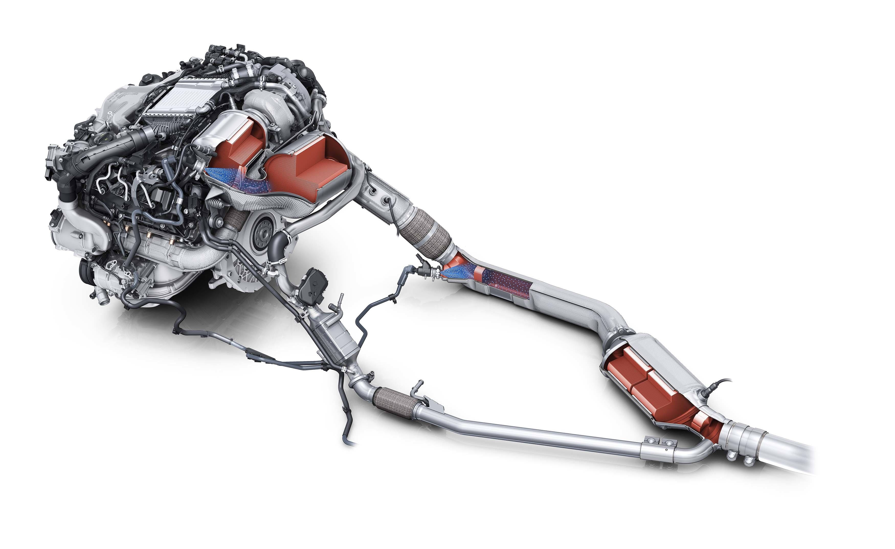 Audi anvender avancerede systemer til udstødningsefterbehandling med henblik på at overholde de hele tiden lavere emissionsgrænseværdier. Udover tiltagene i motorerne kan de nyeste benzin- og dieselmotorer overholde de strenge regulativer takket være højtydende og højtudviklede systemer til rensning af udstødningen. I både TDI- og TFSI-motorerne suppleres udstødningsefterbehandlingen med katalysatorer af partikelfiltre.
